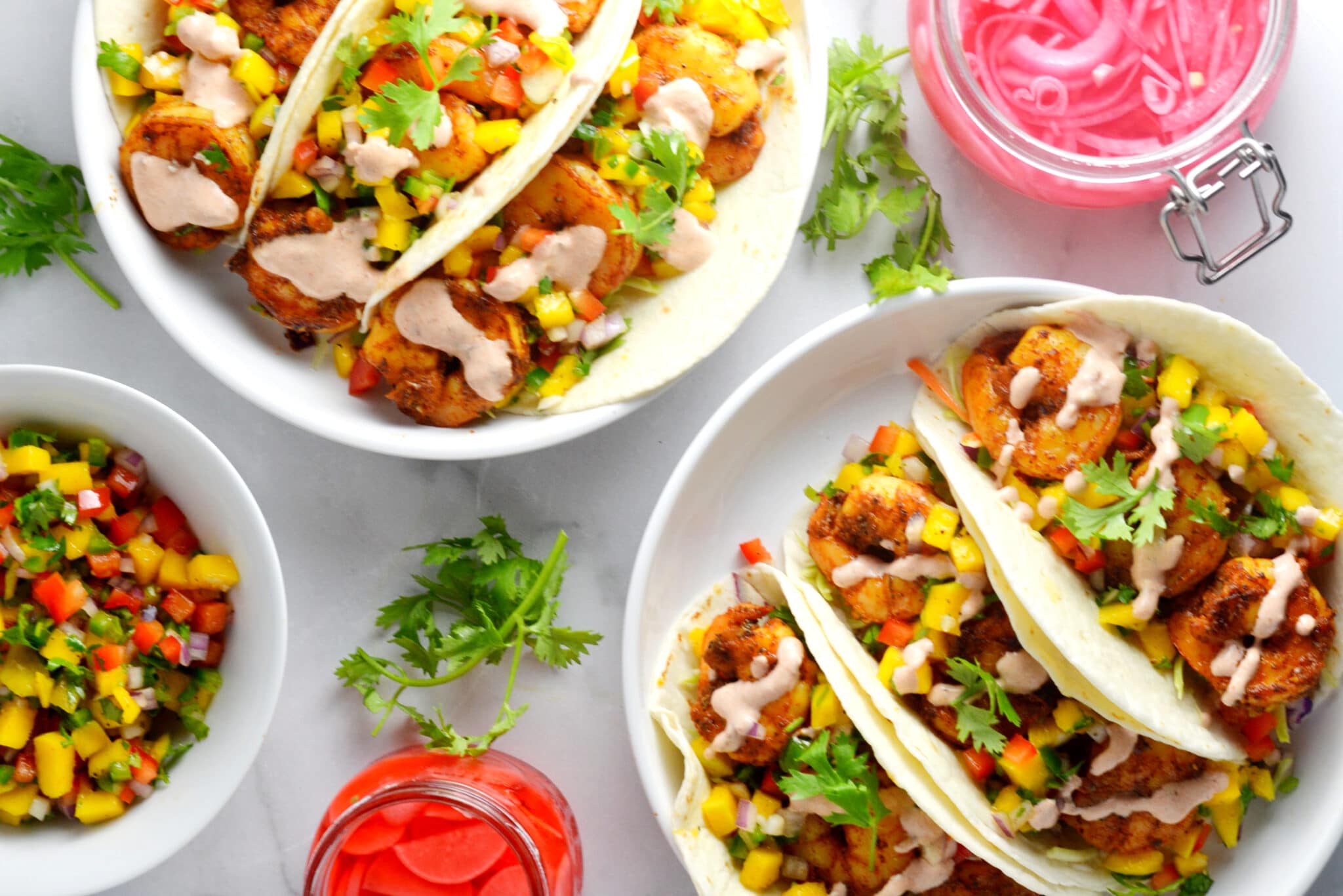 Tacos De Camarones A La Parrilla Con Salsa De Mango