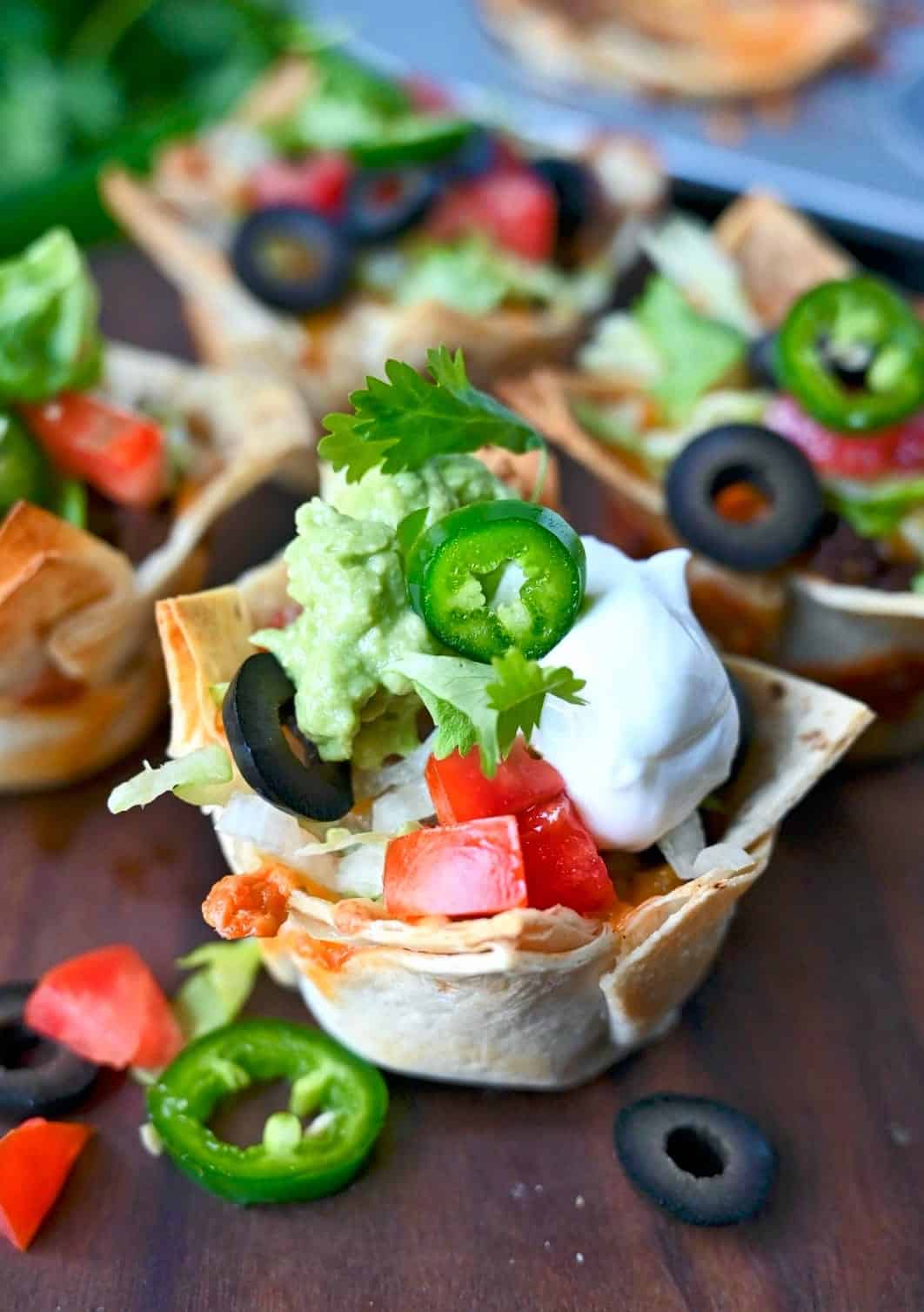 Las copas de taco de carne y frijoles son un gran toque en el taco típico, ¡son un aperitivo, merienda o cena perfecta!