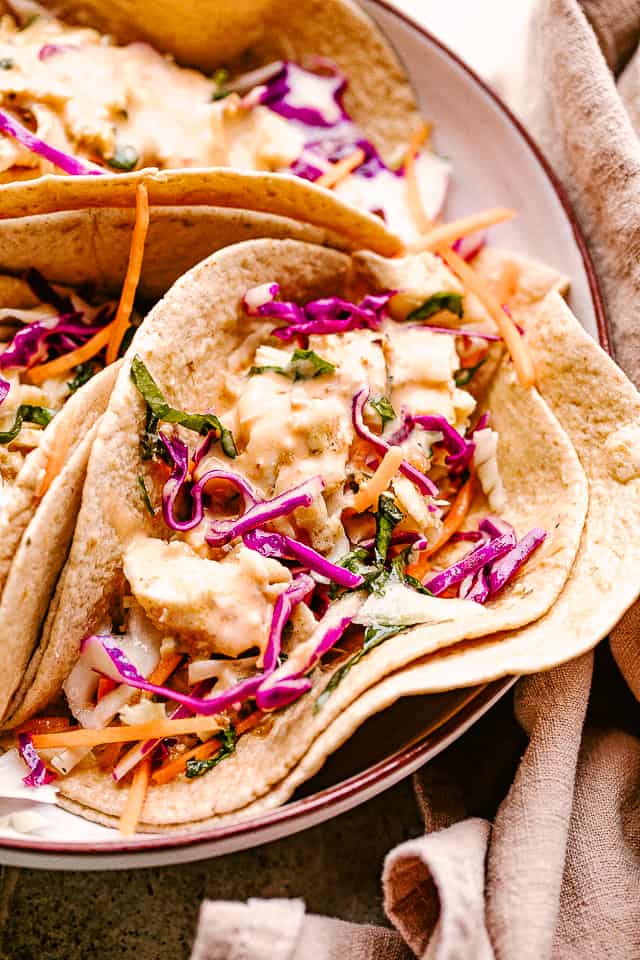 Los tacos de pescado van bien con cualquier cosa ligera, fresca y sabrosa. ¡Los sabores cítricos son particularmente deliciosos! ¡Prueba un poco de arroz con coco y coliflor con limón, papas fritas caseras, ensalada de espinacas con mango y aderezo de miel y limón o este aderezo de aguacate del sudoeste para completar tu festín!