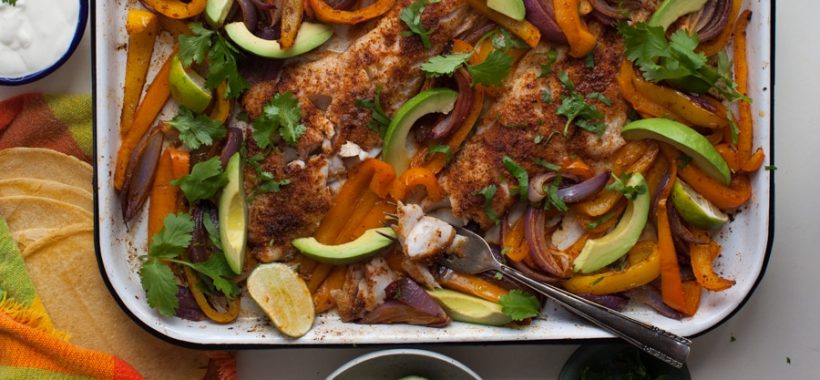 Retire la bandeja para hornear del horno e inmediatamente exprima un limón sobre el pescado y las verduras. Espolvorear con cilantro. Sirva inmediatamente con tacos calientes, Zesty Lime Cream (abajo) y rodajas de aguacate, si lo desea.