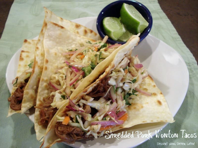 Cada vez que mi esposo y yo vamos a Applebee’s, tenemos los tacos de wonton de cerdo y son tan buenos pero tan salados y grasosos como los wonton fritos. Estos son un poco más saludables; no demasiada sal y las conchas se doran en un plato. De todos modos, un día estaba en la tienda y conseguí una gran oferta en un asado de cerdo y supe que tenía que encontrar una versión casera de este refrigerio favorito y convertirlo en una cena.