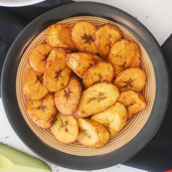 Las tajadas de plátano son un plato típico de varios países de América Latina y el Caribe. El plátano maduro se corta en rodajas longitudinales o redondas y se fríe en aceite vegetal.