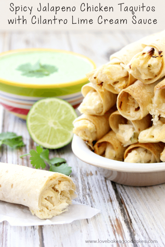 Taquitos picantes de pollo con jalapeño y salsa cremosa de limón y cilantro