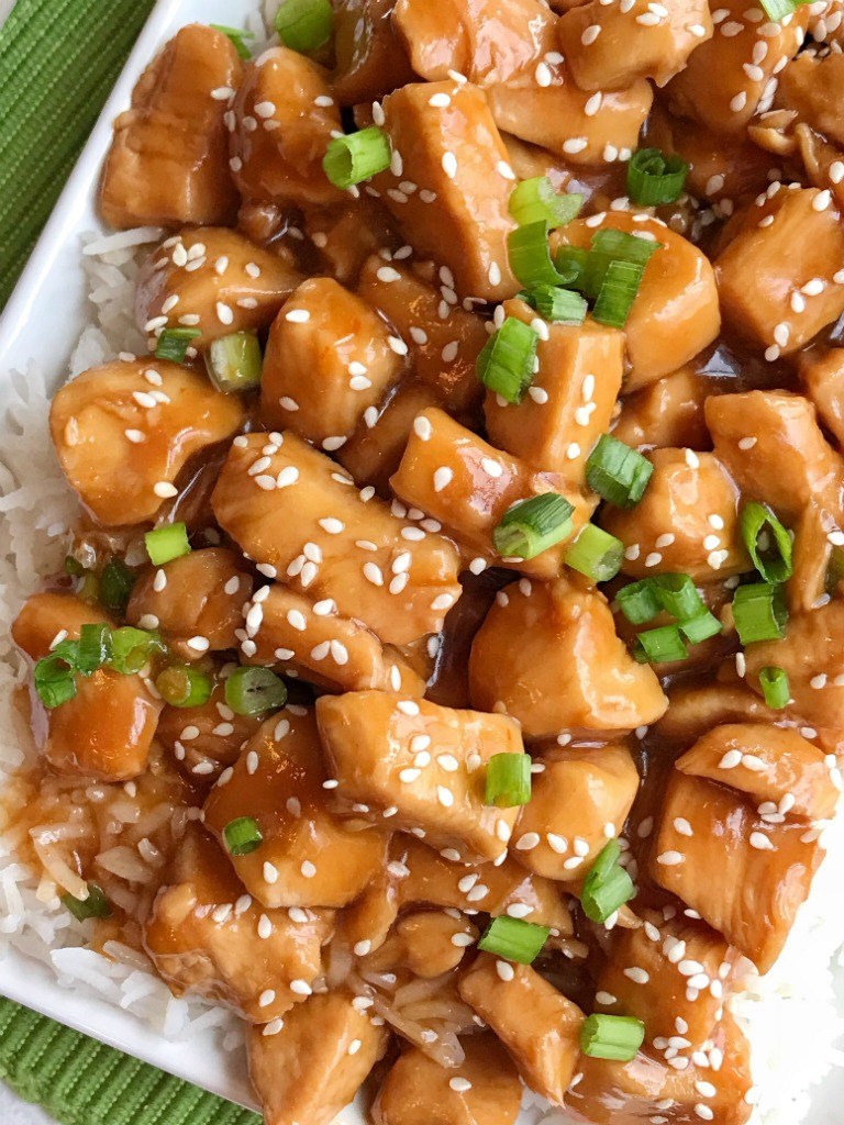 Sirve con arroz y queda delicioso. Es muy similar a la receta de hoy, pero lleva un poco más de tiempo porque hay que arrastrar el pollo y freírlo en porciones. Esta versión de Instant Pot es mucho más rápida y un poco más saludable que la crujiente.