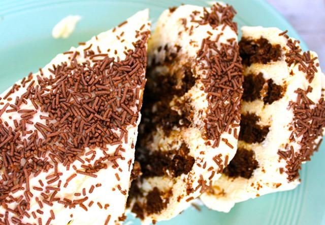 Llene todo el lote con crema y desmenuce la barra escamosa en la parte superior.