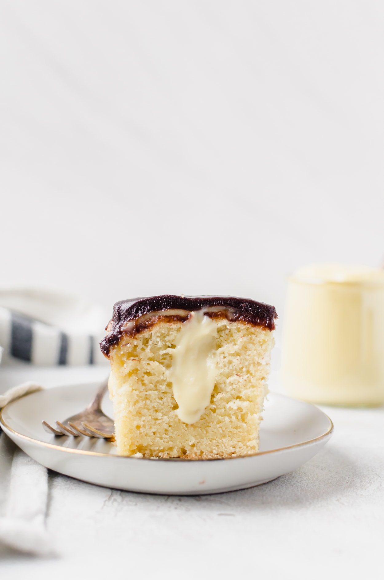 Desde que hice mi pastel de cannoli estoy un poco atascado. Quiero decir, ¿por qué son tan buenos? Y un bizcocho Boston Cream Pie quedó perfecto para no intentarlo. Pastel con bolsillos ocultos de crema y cubierto con ganache… ¡hombre vivo! Podría comer durante días y ser tan feliz.