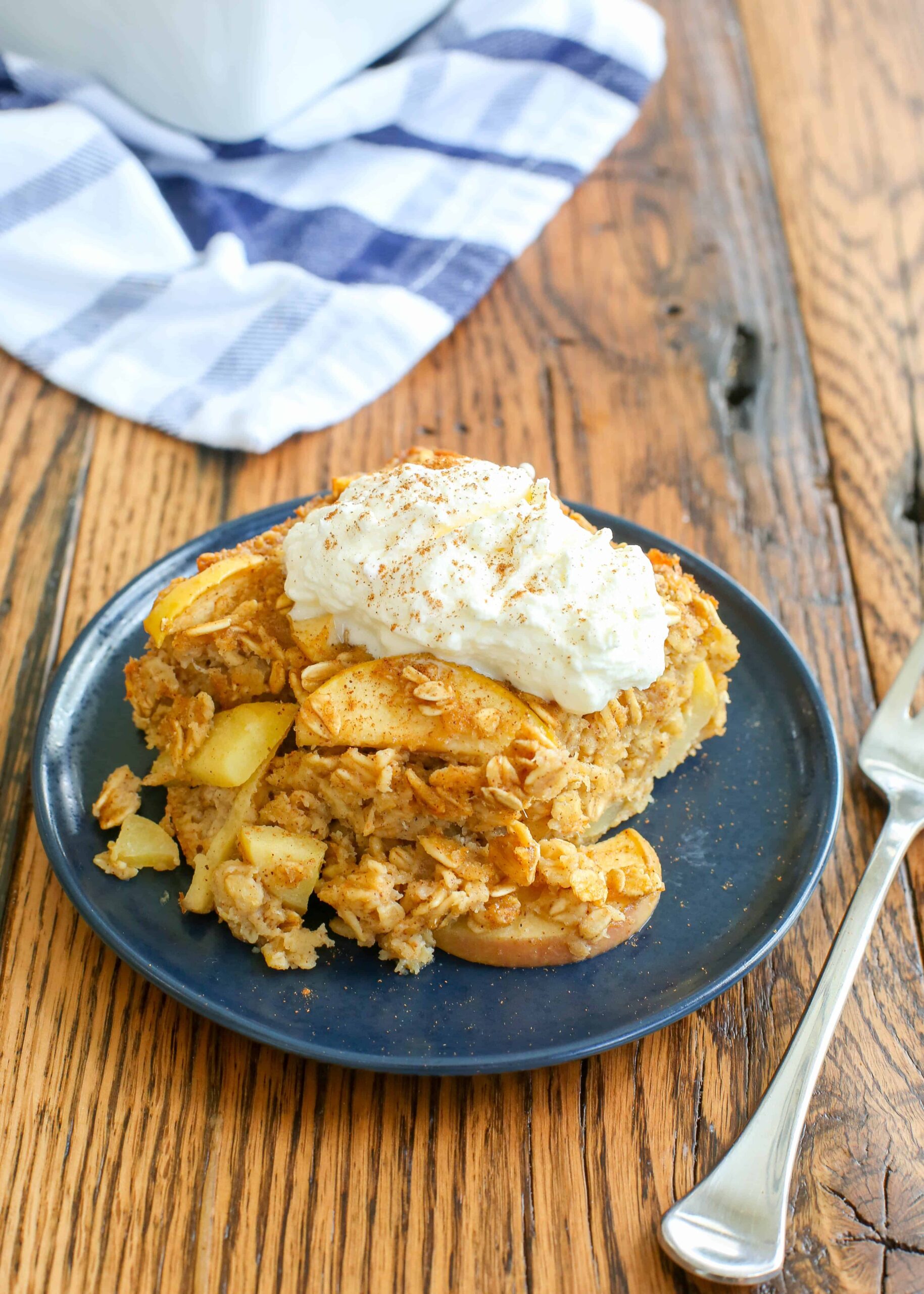 El otoño es el momento perfecto para servir y comer avena horneada, especialmente cuando se trata de canela y manzanas picantes. La avena para tarta de manzana es igual de buena sola, pero también se puede servir con una bola de crema batida (¡o incluso helado de vainilla!).
