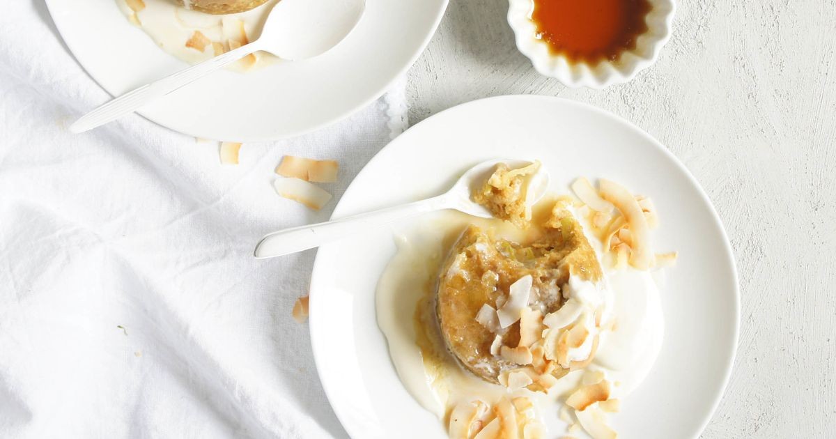 Cubra sin apretar con una envoltura de plástico y cocine en el microondas a temperatura alta durante 2 minutos. Déjalo reposar por un minuto, luego desliza un cuchillo dentro para aflojarlo.