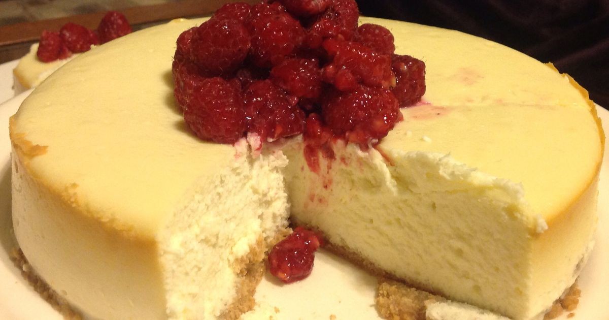 El pastel de queso es lo suficientemente delicioso como para comerlo solo, pero si le gusta rematarlo con frambuesas frescas o una de sus bayas favoritas, espolvoree un poco de azúcar en polvo para llevarlo al siguiente nivel.