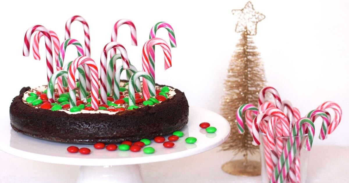 Justo antes de servir, bata la crema restante hasta que espese. Retire con cuidado la tarta de queso de la lata y colóquela en un plato para servir. Extender la nata por encima y decorar con pepitas de chocolate, M&M’s y pralinés.