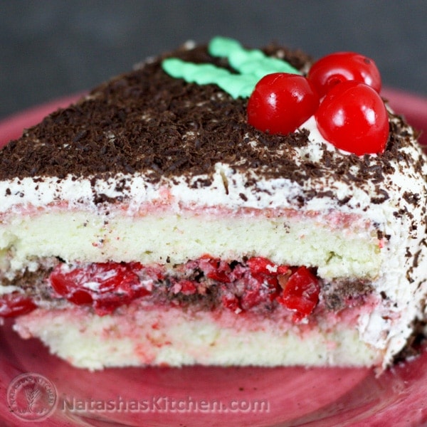 Mi suegra me dio la receta de este pastel de cerezas ruso por teléfono y lo preparé para Año Nuevo. Es la misma receta básica de biskvit que me encanta.