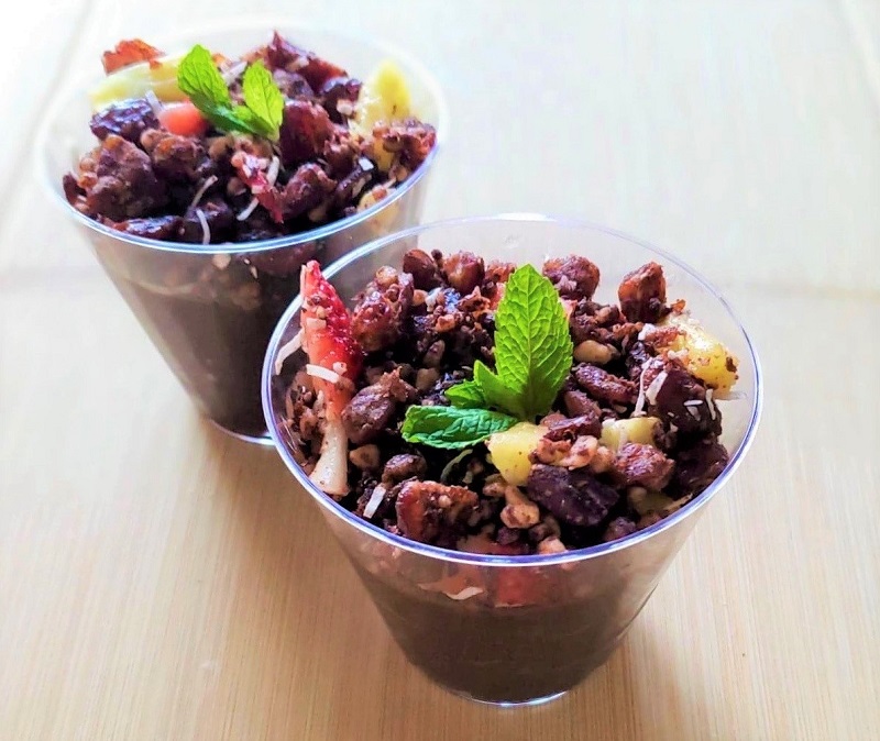Por supuesto, siéntete libre de cambiar los ingredientes según tus deseos o, si estás preparando este postre para un grupo, según las preferencias de gusto de tus invitados. Los arándanos, las frambuesas y una pizca de albahaca fresca son excelentes adiciones, al igual que los arilos de granada y las semillas de chía, o las nueces picadas y las pasas. ¡Hay tantos ingredientes sabrosos para probar más allá de las tradicionales tazas de galletas poco saludables llenas de gusanos dulces!