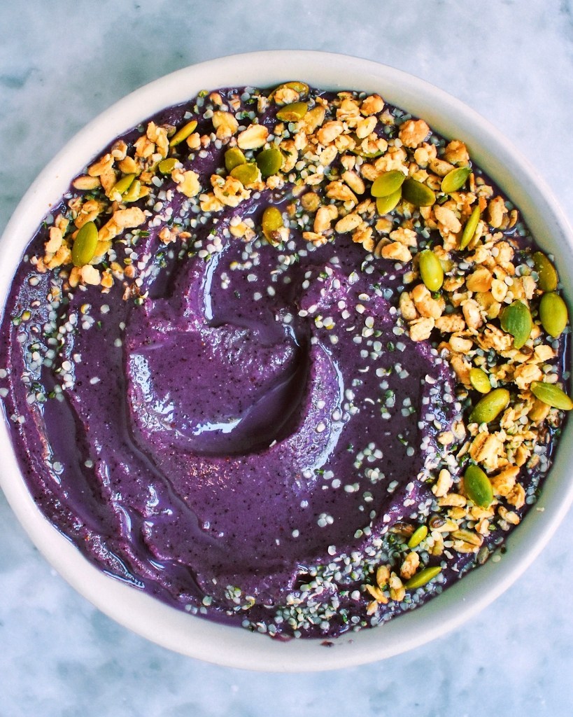 Tazón de batido de cáñamo y arándanos