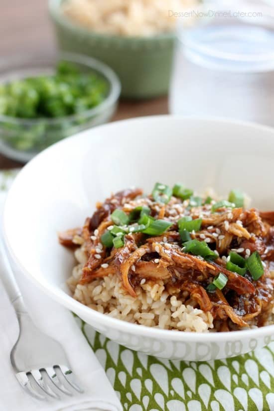 La salsa de este pollo… ¡es agridulce y llena de sabor! ¡Y hay mucho para sumergir tu pollo desmenuzado! Pon este pollo picante en un poco de arroz integral, agrégalo con cebollino y semillas de sésamo, ¡y listo! Japonés en casa!