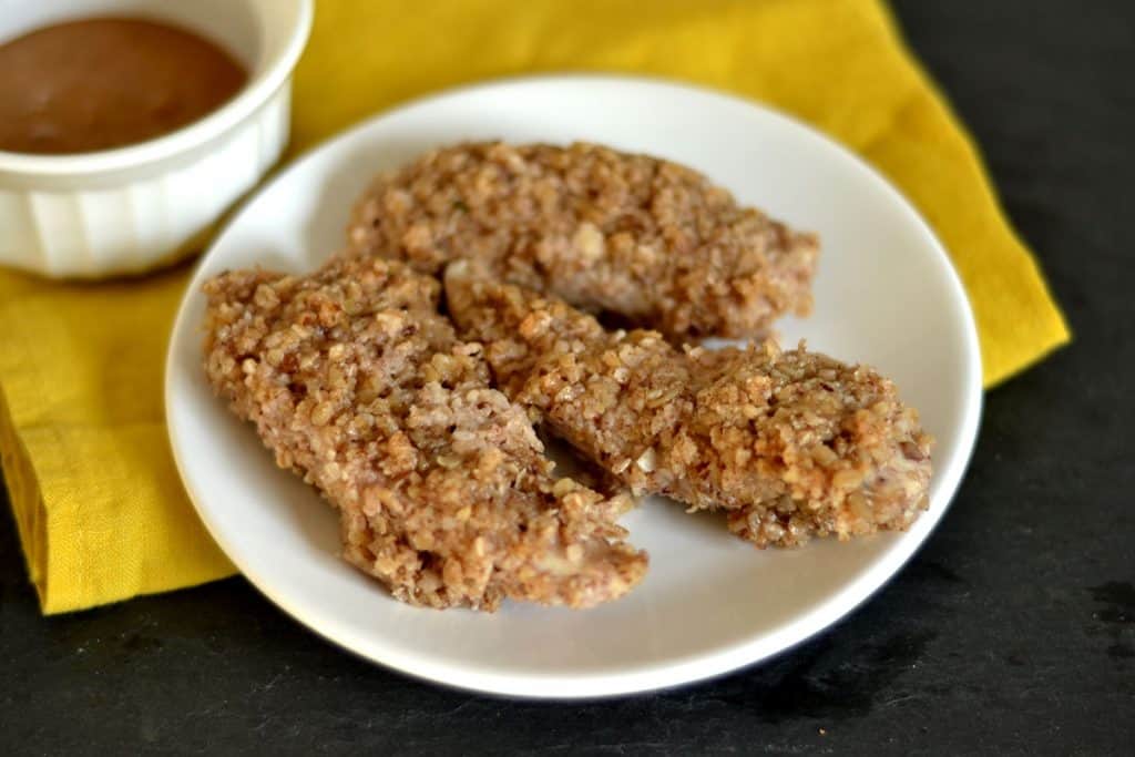 ¡Esta es una excelente alternativa a las tiras de pollo procesadas y seguramente será un éxito entre los niños! Una receta muy sencilla con solo 5 ingredientes y poco tiempo de preparación. Para uno de mis amigos Paleo o Gluten Free, omita las migas de pan Panko y duplique la cantidad de nueces. Necesitarás un procesador de alimentos para triturar el coco y las nueces y colocar la mezcla en un tazón pequeño. Usa un plato aparte para batir los huevos. Primero sumerja el huevo, luego transfiera el pollo al tazón con la mezcla de nuez y coco. Coloque el pollo en una fuente para hornear de 9 × 13: