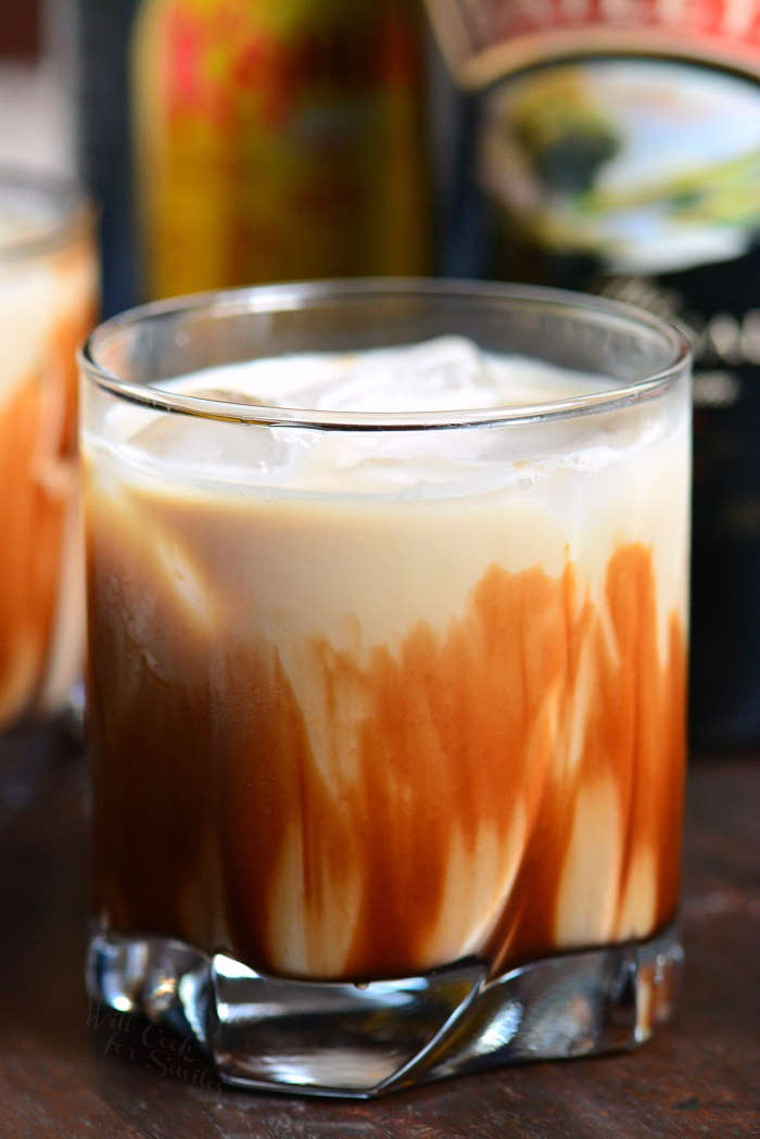 - Combine Bailey’s Irish Cream, Kahlua, vodka, leche y hielo en una coctelera. Agitar enérgicamente un par de veces.
