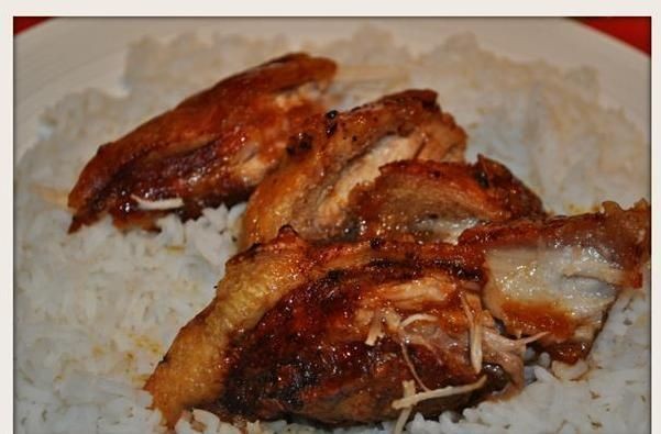 Sirva con arroz al vapor, una verdura asiática al vapor y un poco de pimiento rojo picado.