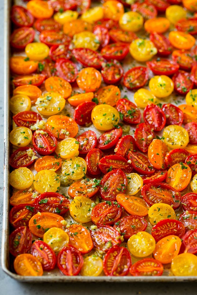 A mis hijos les encantan estos tomates cherry asados tanto como la versión fresca. Es un plato inesperado que encantará a amigos y familiares. Si elige una variedad de tomates coloridos, ¡esta receta sigue siendo lo suficientemente elegante como para servirla en la cena!