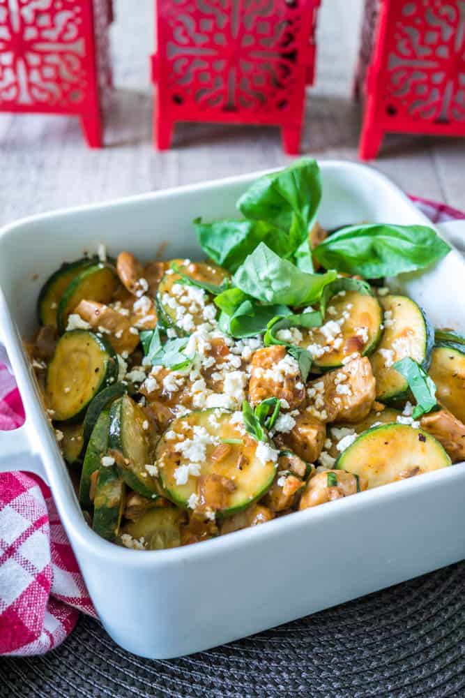 ¡También hemos decidido que regresar a Sudáfrica por un período prolongado es una oportunidad perfecta para restaurar algunas de nuestras opciones de alimentos y ser aún más saludables! En la parte superior del menú están los tomates secados al sol, la albahaca, el pollo y el calabacín: ¡otra receta súper rápida y fácil llena de sabores! Mi mamá (nuestra nueva probadora de sabor no oficial y no fanática de las verduras en general, ¡desafortunadamente!) puede estar en desacuerdo, ¡pero no me creas!