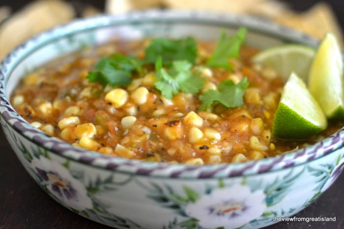 No te olvides de preparar esta Salsa de Tomatillo y Maíz Asado al Fuego: