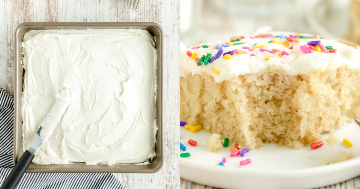 Esta receta simple y loca de pastel de vainilla está hecha solo con puntadas de despensa. También se le conoce como bizcocho caprichoso o bizcocho depresión. Esta receta nació en la era de la depresión y es una torta blanca sin huevos ni leche que queda húmeda y deliciosa!
