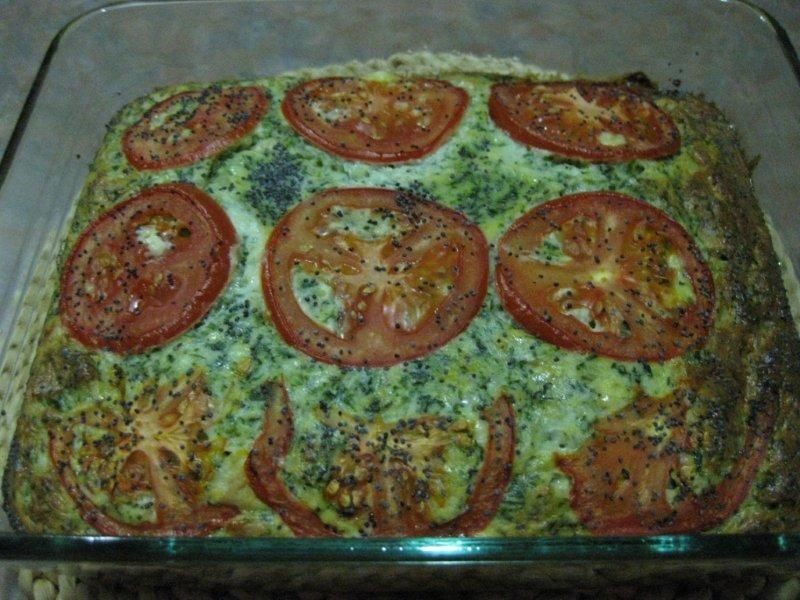 Verter en una fuente para horno rectangular o bien engrasada y hornear en horno moderado durante 35-40 minutos hasta que se centre. Servir como plato principal con ensalada y pan tostado.