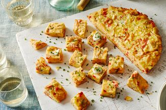 ¿Tal vez tienes un poco más de energía para poner en tu tortilla? Luego, dedique un tiempo a sacar el refrigerador para obtener fiambres, pimientos en escabeche y hierbas para agregar color y sabor. Para un bocadillo de fiesta instantáneo, córtalo en cuadrados, estilo tapas, y mézclalo con un poco de mayonesa de ajo.