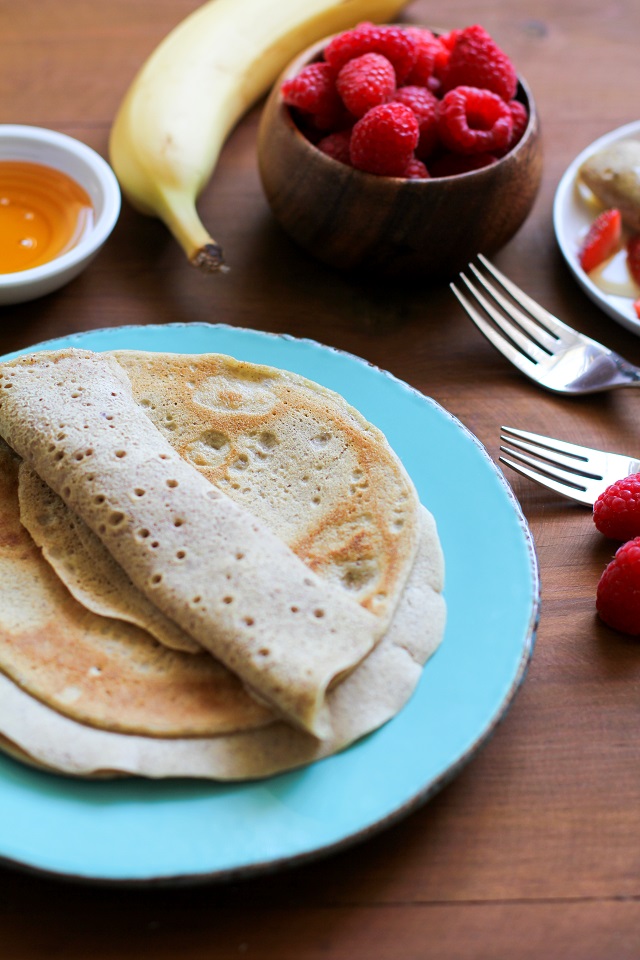 Estas crepas sin granos se preparan fácilmente en una licuadora y solo requieren cuatro ingredientes. Sin gluten y paleo-friendly, ¡puedes servirlos en el desayuno o postre con fruta fresca de regalo!