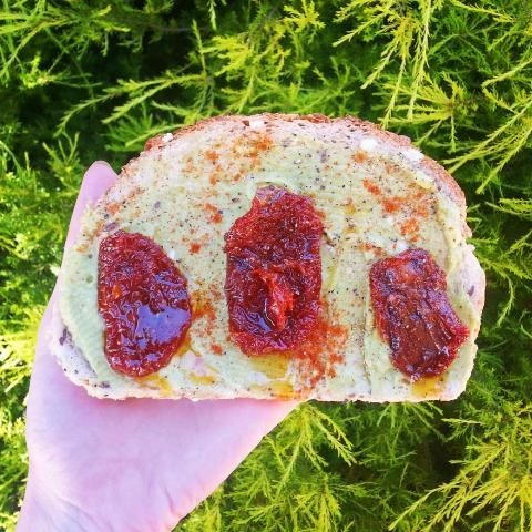 Encontré que no es necesario sazonar las cremas con sal ya que hay suficiente sal en las tres selecciones de crema. La pimienta negra termina con lo que considero un delicioso desayuno y por supuesto esta delicia se puede consumir en cualquier momento del día. Es posible que prefiera no machacar el aguacate y simplemente colocar rebanadas sobre la tostada. Use mantequilla o margarina y vegemite/marmite o mantequilla de maní crujiente.