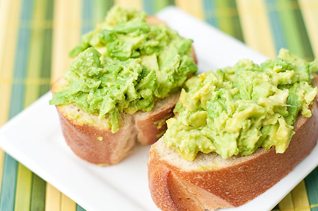 ¡Pan de rebanadas gruesas y aguacate recién triturado!