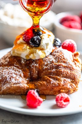 Acabo de usar croissants comprados aquí que funcionaron perfectamente. Prepare esta tostada francesa muy especial sirviéndola con crema batida casera, fruta fresca y jarabe de arce puro.
