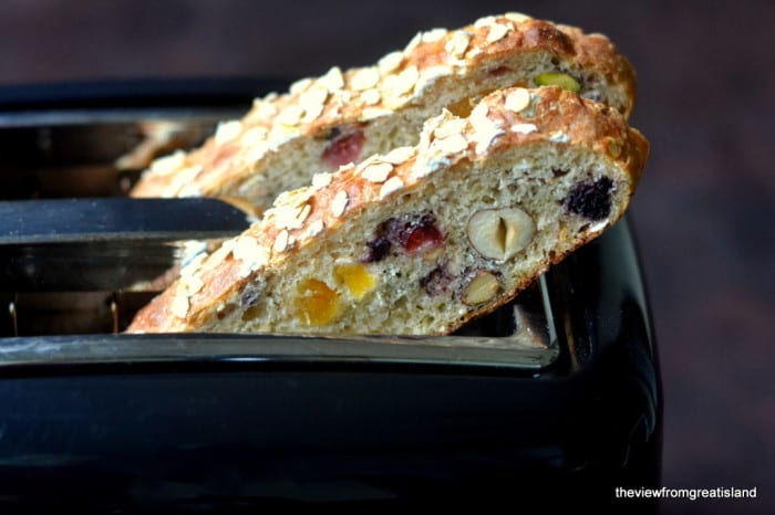 Tostadas de muesli ~ Algunos panes deben tostarse, como este pan grueso con frutas y nueces. A medida que las rebanadas gruesas de galleta golpean las bobinas calientes, las nueces comienzan a hornearse y se vuelven fragantes, los trozos de fruta se congelan y el olor del pan de masa fermentada recién horneado llena la cocina.