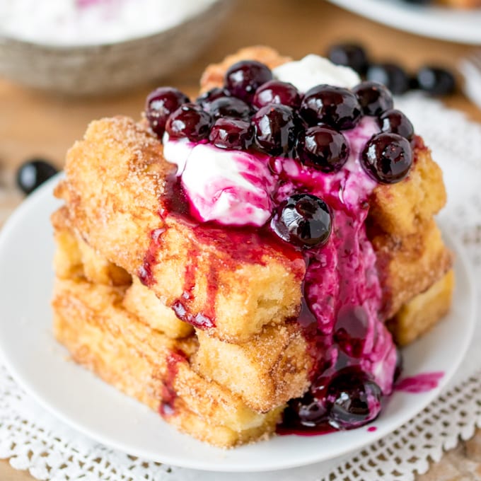 Receta de tostadas francesas de canela con yogur griego y salsa de arándanos:
