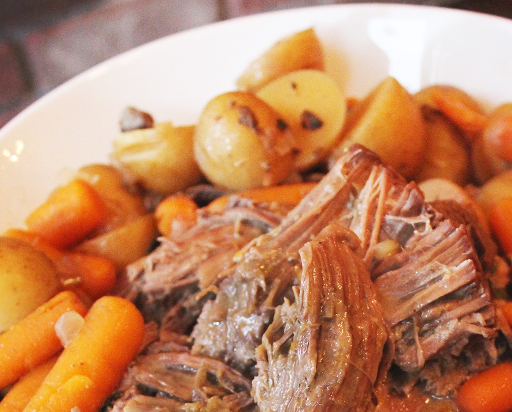 Esta asadera es uno de esos platos que siempre preparo para mi familia. En primer lugar, es una olla de cocción lenta, lo que lo hace muy fácil. En segundo lugar, ¡tiene una increíble cantidad de sabor! La carne se descompone tan fácilmente y las papas y las zanahorias son tan tiernas que básicamente se derriten en la boca. Y la salsa que hace… ¡te la puedes beber con una pajita!
