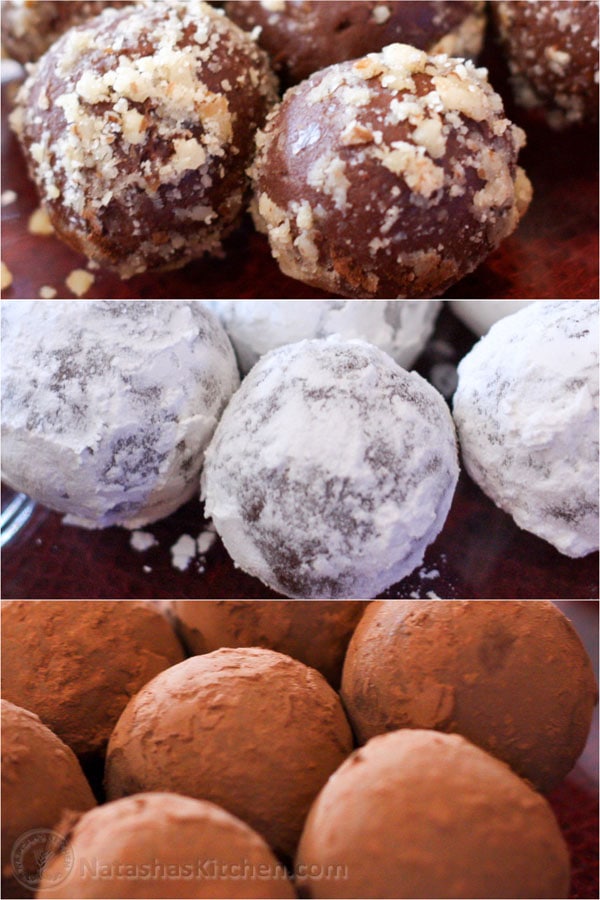 Estos son increíblemente fáciles. No hay “cocina” involucrada. Hay tantas posibilidades con estas trufas de chocolate. Puedes añadir varios perfumes y licores a la mezcla o capa y decorarlos como quieras.