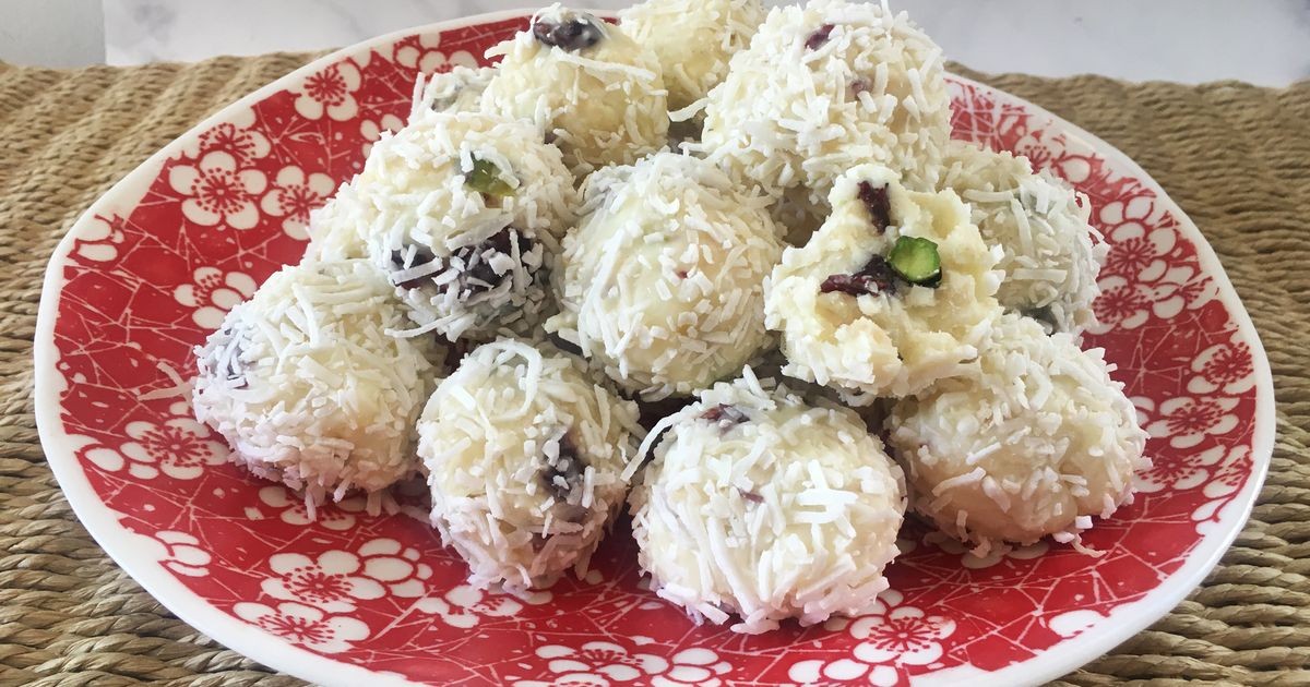 - 1/2 taza de coco rallado, más extra para rodar