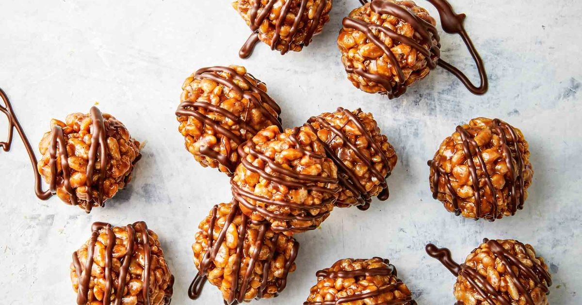 Cubra una bandeja para hornear grande con papel pergamino. Coloque las barras Mars y la mantequilla en una cacerola a fuego lento. Revuelva constantemente, sin hervir, durante 5 a 7 minutos o hasta que la mezcla se derrita y esté suave. Verter en un recipiente grande resistente al calor. Añadir las burbujas de arroz. Mezcle hasta que esté bien combinado.