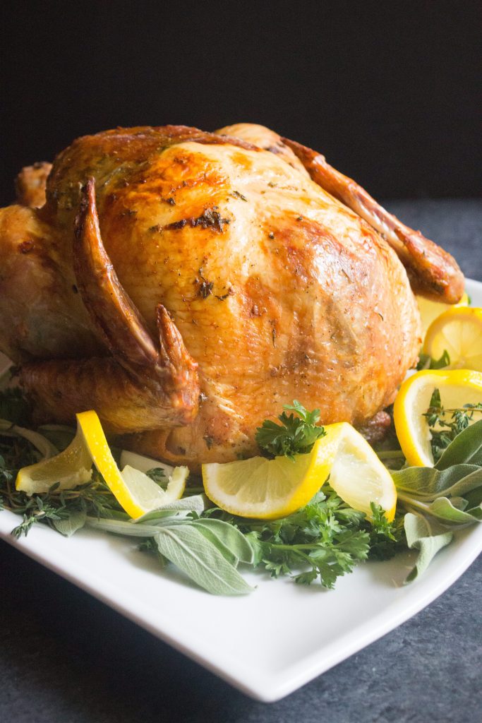 Esta receta también es fácil. No hay salmuera ni remojo. Solo un simple masaje con mantequilla que deja la carne jugosa y sabrosa.