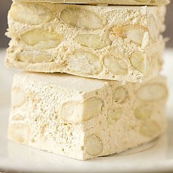 Criado en una familia italiana, el turrón era una parte tan importante de nuestra nomenclatura como los sándwiches tradicionales como los pretzels o las papas fritas. Mi madre me dijo una vez que cuando yo era niño, mi abuelo (que vino de Italia a los 18 años) siempre se aseguraba de que hubiera dos cosas en la despensa: cartones de jugo de limón y una botella grande de Brioschi. ¡Un auténtico italiano, de verdad! Siempre me han gustado las hermosas cajas en las que se colocaban los dulces individuales: eran coloridas y tenían algunos de los diseños más exclusivos. En su interior se encuentran pequeños caramelos rectangulares elaborados a partir de un turrón dulce incrustado con nueces. La versión más tradicional está hecha con almendras, pero también he visto versiones con pistachos y también aromatizadas con limón, vainilla o naranja.