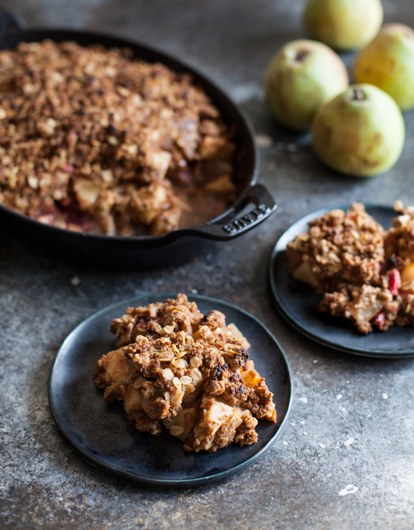 Para esta época de diciembre, es posible que haya hecho todas las cremas de mantequilla y azúcar y todo el enrollado, corte, rociado y decoración que pueda manejar. Es posible que esté listo para un postre simple y sin complicaciones, algo que pueda preparar en un instante, pero puede contar con que será delicioso, fragante y agradable para la multitud. Esta manzana festiva, pera y arándanos crujientes es tu respuesta. E se você cozinhou muito pouco este mês porque está muito ocupado ou não está de bom humor, então essa pode ser a sobremesa do feriado para você – uma alternativa simples e relativamente saudável para alguns dos projetos de culinária mais ambiciosos que você poderia realizar nesta época ¡del año!