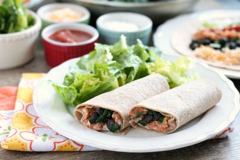 ¡Realmente estoy disfrutando todas mis sobras saludables! Hice estos rollos de burrito de espinacas y frijoles el día después de mi saludable camote, y como mis hijos huelen mal, preparé cenas separadas y guardé las sobras para el almuerzo. Mi esposo tuvo la amabilidad de no traer mis sobras para el almuerzo al trabajo (aunque realmente disfrutó de esas dos comidas) solo para que pueda almorzar algo caliente, delicioso y saludable durante toda la semana mientras hago mi desafío de cocina. ¡Él fue un verdadero salvavidas!