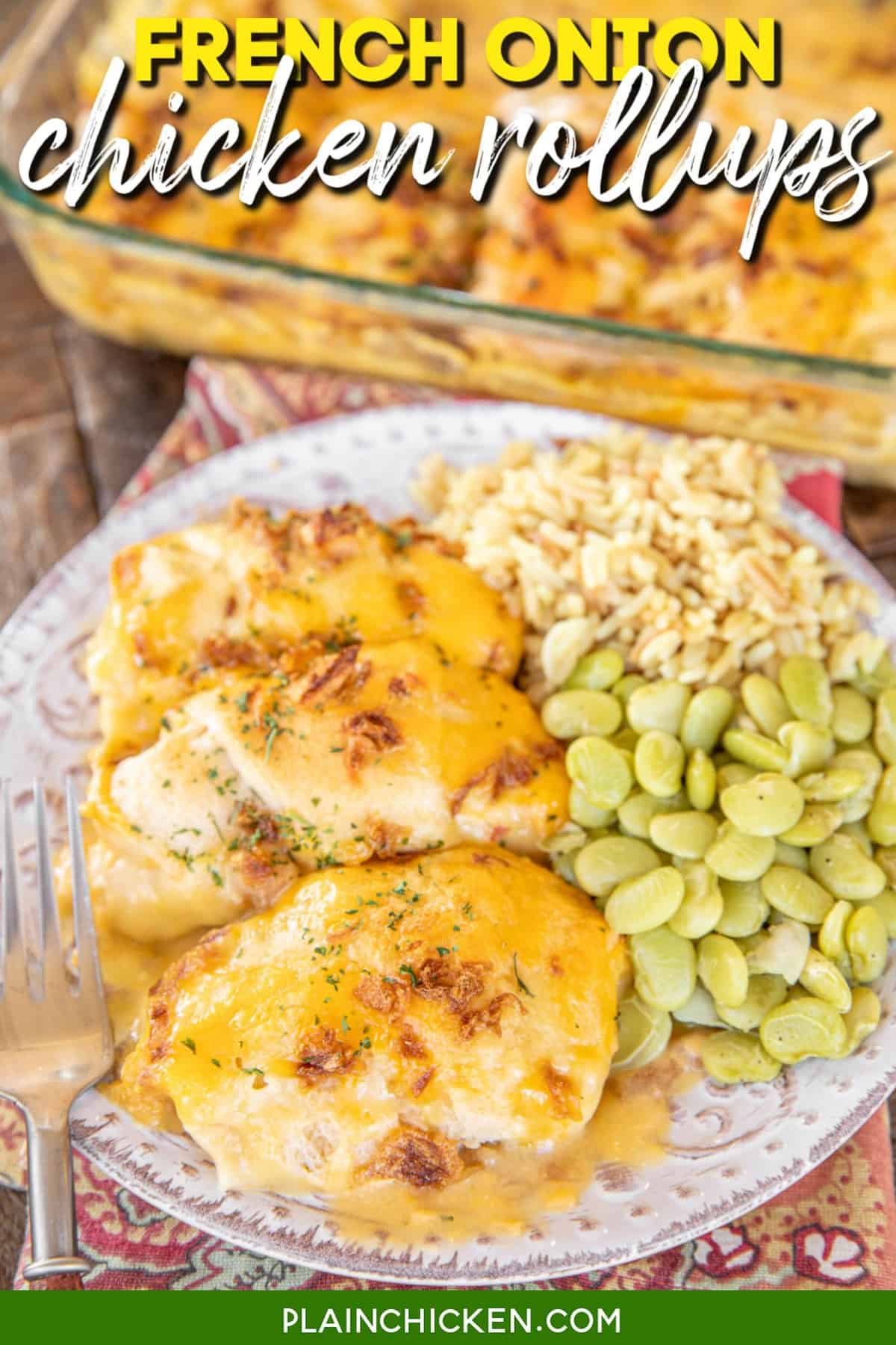 Los rollitos de pollo son los favoritos de la familia. Tengo varias versiones en el blog. ¡Estos rollos de pollo con cebolla francesa son uno de mis favoritos! Esta cazuela tiene toneladas de sabor increíble con solo unos pocos ingredientes simples. Pollo, salsa de cebolla francesa, queso y cebolla frita envueltos en media luna y cubiertos con crema de sopa de pollo. ¡TAN simple y delicioso! Literalmente podría comer toda la olla yo solo. Me encanta este pastel de pollo!!