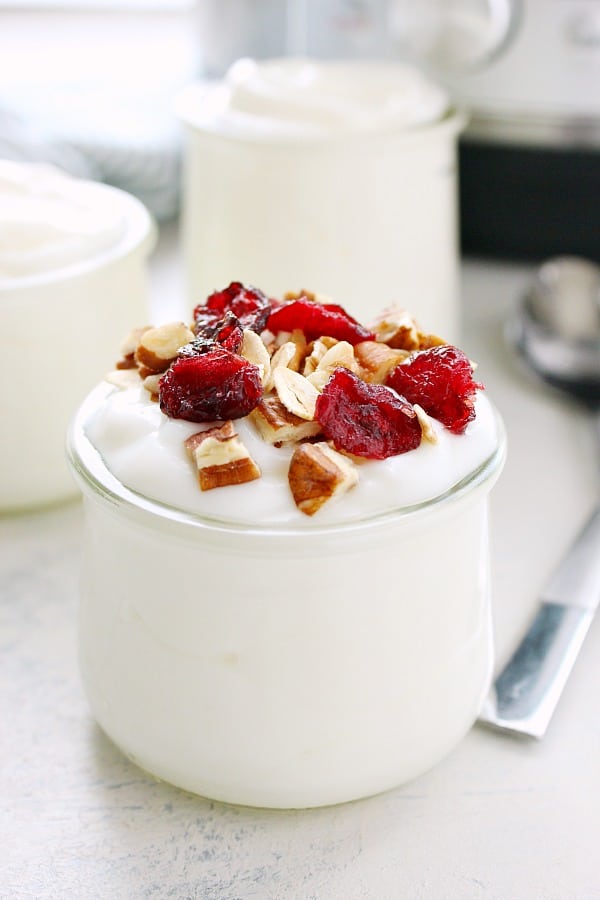 - asegúrese de usar yogur con culturas activas (compruebe el embalaje)