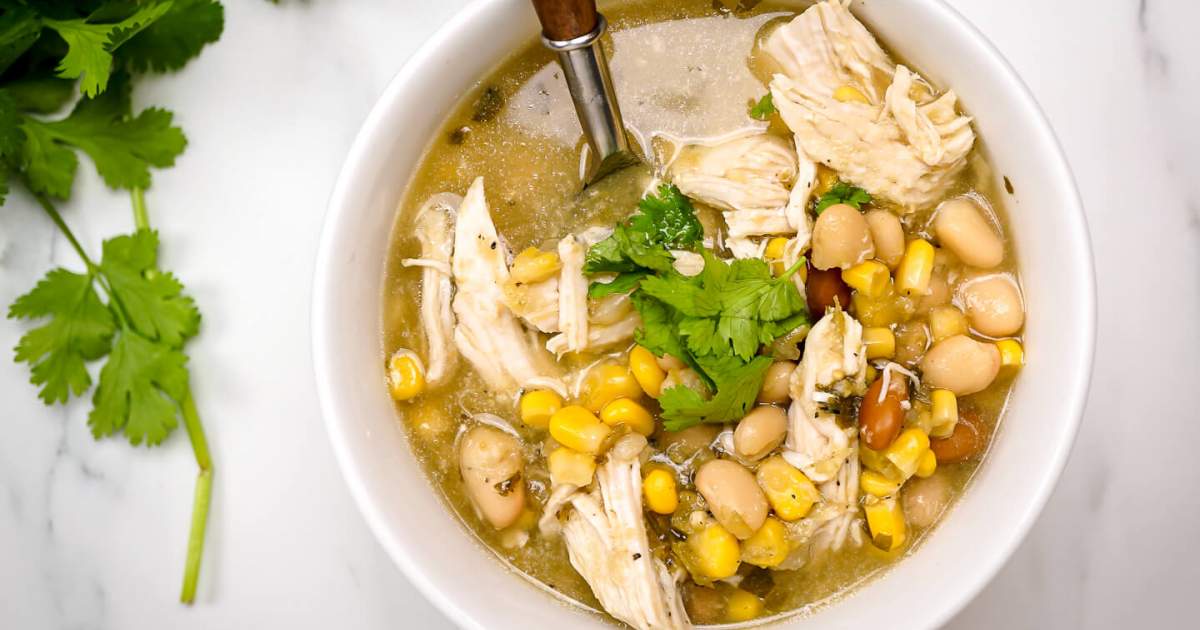 - Olla de cocción lenta: Esta es una manera tan fácil de hacer este chile. Simplemente vierta todo en la olla de cocción lenta, ponga la sartén a fuego lento durante 4 horas y la sopa estará lista. Como la pechuga de pollo se puede secar si se cocina demasiado tiempo, no recomiendo cocinarla por más de 4 horas. De hecho, tres horas pueden ser suficientes si tiene una estufa eléctrica que se calienta.